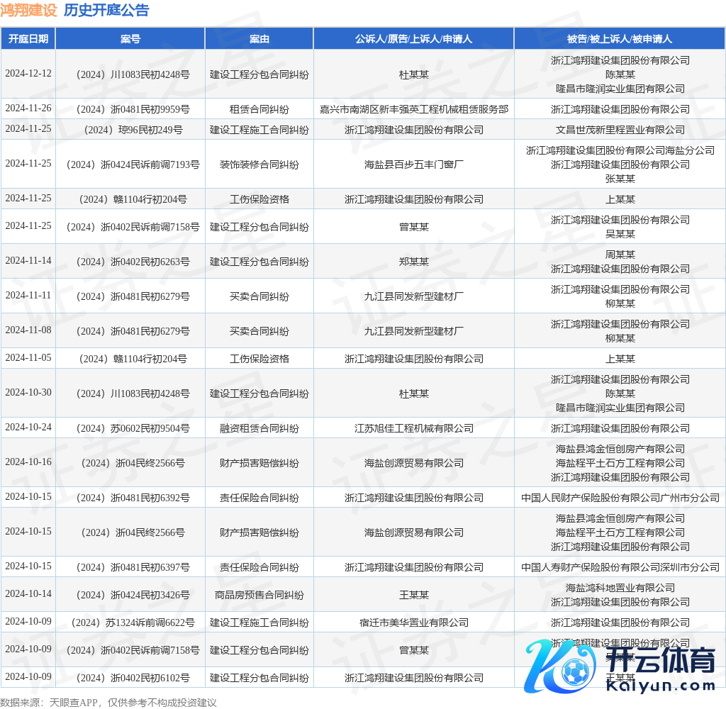 本站音讯九游体育app(中国)官方网站,凭证天眼查APP披露,近日公布了一则浙江鸿翔开垦集团股份有限公司四肢被告/被上诉东说念主的开庭公告,详备推行如下: