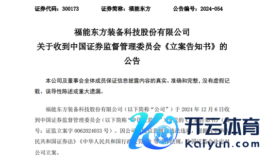 12月6日晚间,福能东方(300173)发布收到中国证券监督处罚委员会《立案示知书》的公告称,因公司涉嫌信息败露罪犯违法,左证《中华东谈主民共和国证券法》《中华东谈主民共和国行政处罚法》等法律规则,中国证监会决定对公司立案。