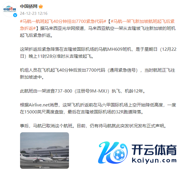 据马来西亚光华网报谈九游体育app(中国)官方网站,马来西亚航空一架从吉隆坡飞往新加坡的班机升起后要害折返。