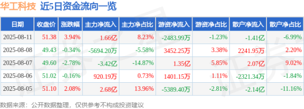 本站音书,为止2025年8月11日收盘,华工科技(000988)报收于51.38元,飞腾3.94%九游体育app娱乐,换手率3.97%,成交量39.85万手,成交额20.17亿元。