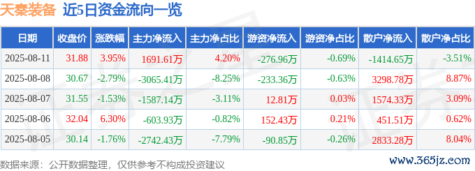 本站音讯,示寂2025年8月11日收盘,天秦装备(300922)报收于31.88元,飞腾3.95%,换手率10.22%九游体育app官网,成交量12.74万手,成交额4.03亿元。