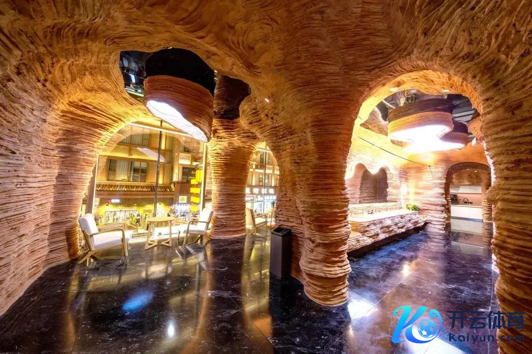 网友发布的图片透露,“敦煌净界”共有两层。从外部看是超白玻幕墙,仿佛写字楼一般,干预其中会发现好多敦煌元素的缠绵:雅丹地貌的墙体、敦煌壁画。在恭候区摆放了多把椅子和桌子,一旁居然还有茶饮自助机。