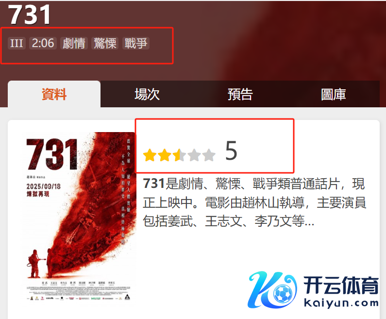 《731》终于在香港上映了九游体育娱乐网,此次基本算是同步了,9月19日也就出入一天时刻。 可谁能念念到,这部在内地票房大爆的电影,到了香港果然遭逢滑铁卢,首映票房截止发稿时仅12万港元。 排名第4不说,还被一堆日影围攻,以致连2005年的老片都打不外。 这到底是何如回事?是香港市集太抉剔,如故片子本人出了问题? 一、香港票房榜单。 电影《731》讲的是那段千里重的历史,题材本人就带着强烈的践诺真谛和心绪冲击。 在内地,上映后票房通盘呼吁大进,上映首日狂轰3.4亿,次日现时票房又破了1亿,总票
